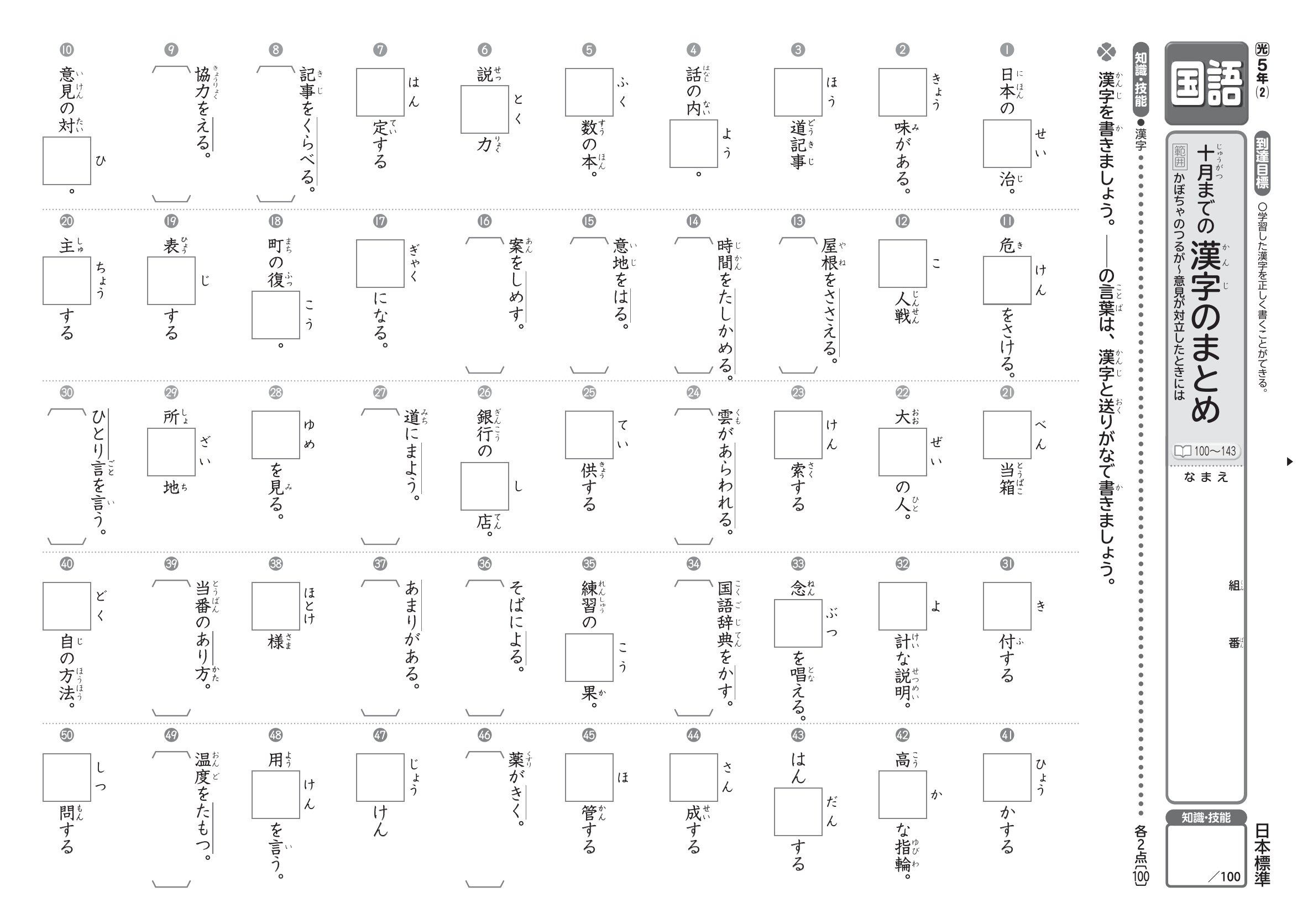 単元テストと同様の、「漢字のまとめテスト」のデータも収録しています。