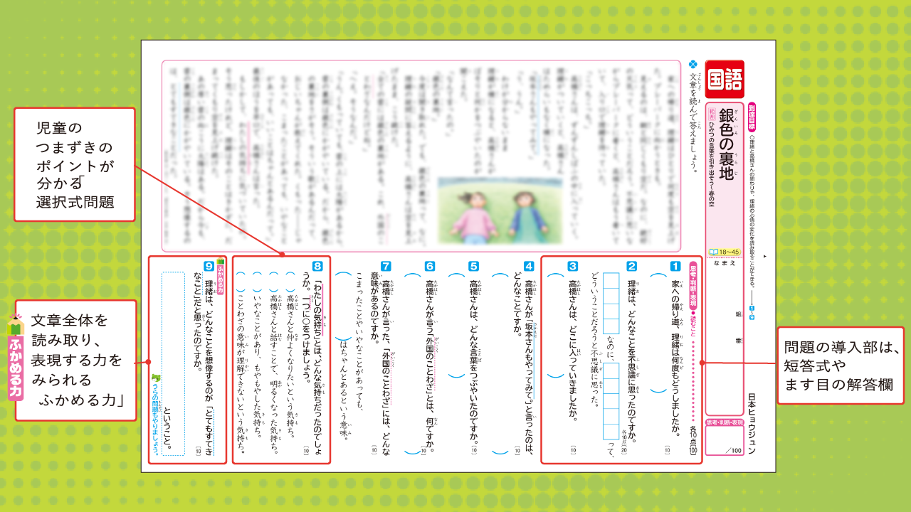 ●テスト紙面の表裏を見開き掲載した「コンパクト教師用書」(特許取得 第5766854号)