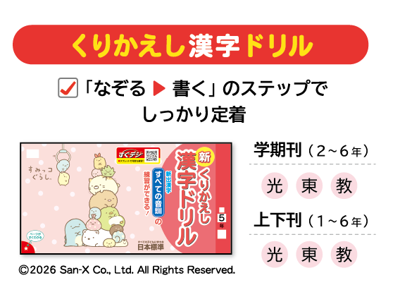 単元ページの最後には、内容をおさえる「まとめ」ページを用意することで、単元内容全体を確実におさえることができます。また、赤刷り教師用書があるので、先生の採点負担が軽減します。