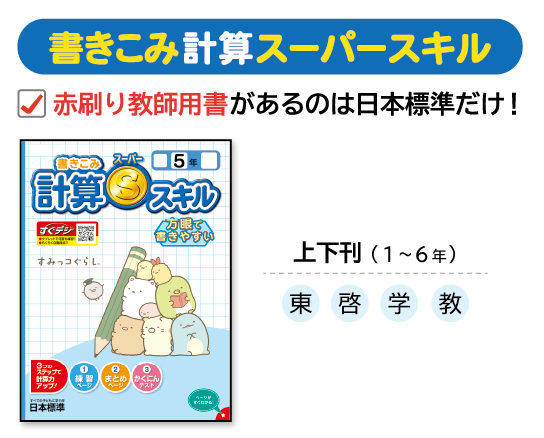国算テスト、漢字計算ドリル・スキル1点ご採用で、漢字計算もどちらも使えます。