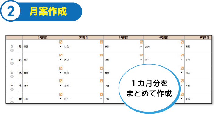 月案の作成にも対応をしており、1か月分をまとめて作成することができます。