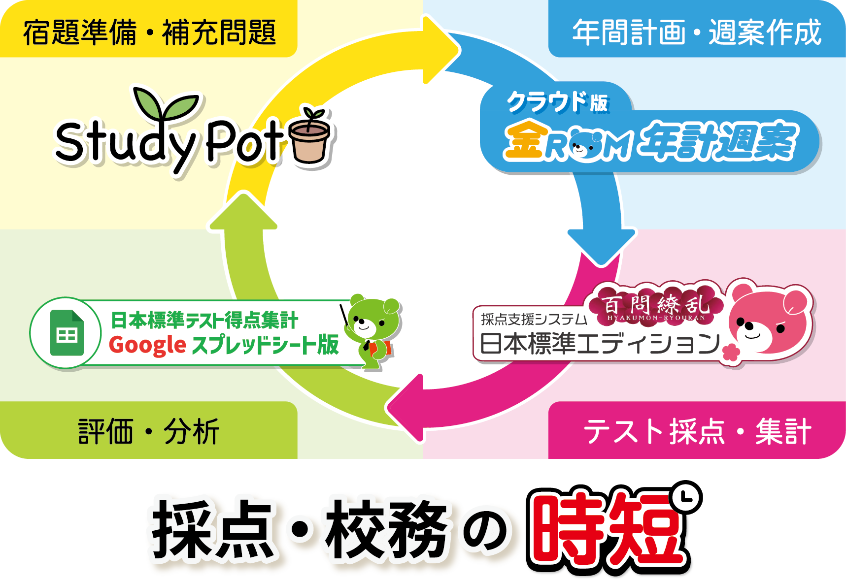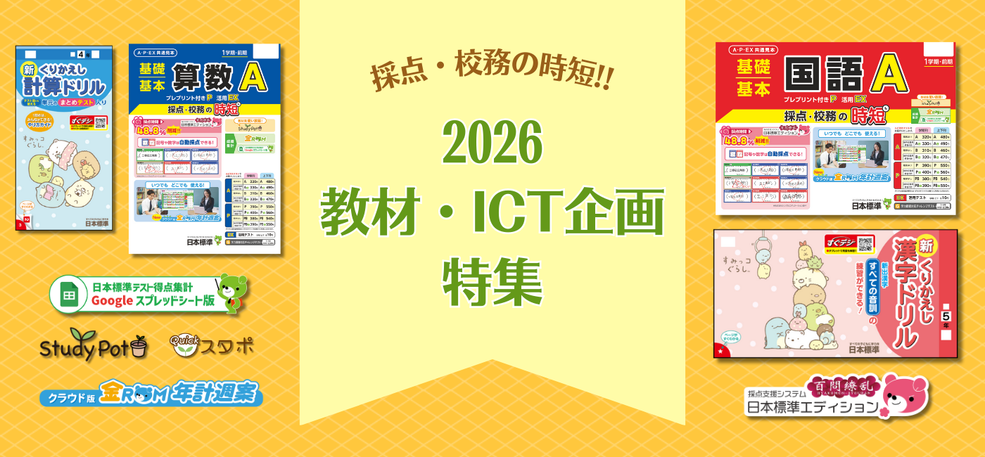2026年度の日本標準のICT企画は、年間計画から採点、評価・分析、宿題準備といった先生が行う業務をすべてサポートします。