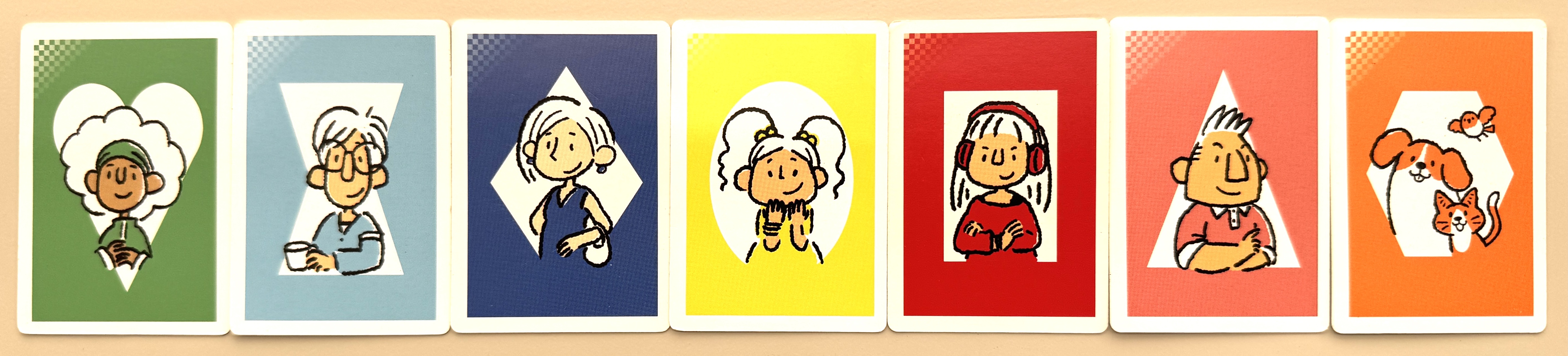 ヒトトイロのキャラクターカードでは、人物の見た目と色の組み合わせが、一般的なイメージから少しずらして表現されているように感じました。