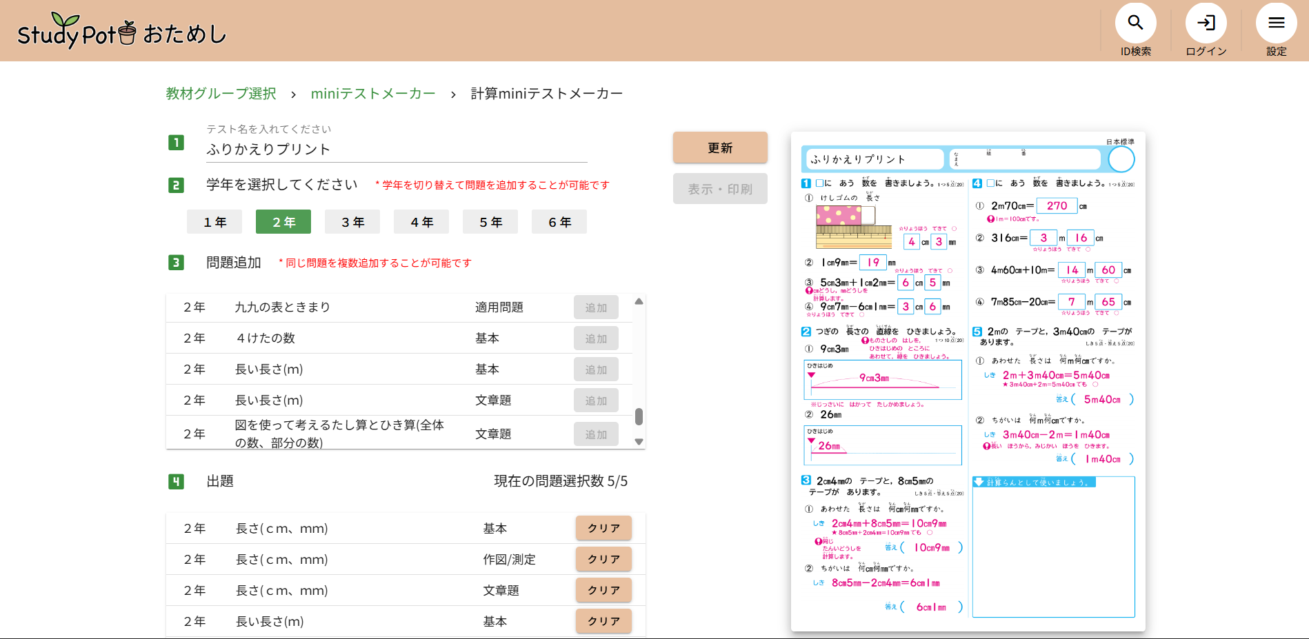 ●複数の学年を一枚に混ぜたプリントも作成できます。