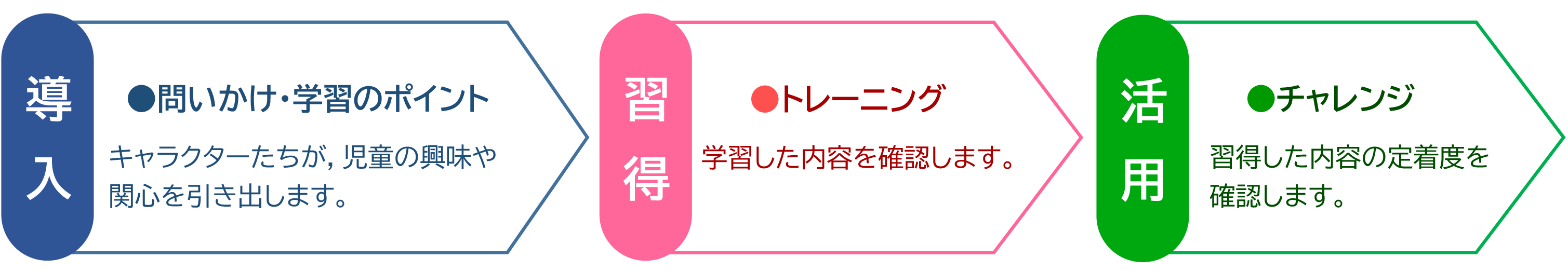 〇年生の地図学習は、開き2ページ完結型で、授業中でも自学自習でも取り組めます。導入(問いかけ・学習のポイント)⇒習得(トレーニング)⇒活用(チャレンジ)の3ステップで児童は無理なく楽しく学習することができます。また、教師用書では、寺本先生による授業で活用できる地図の情報を多数掲載し、先生も児童も地図学習に取り組みやすい工夫をしています。