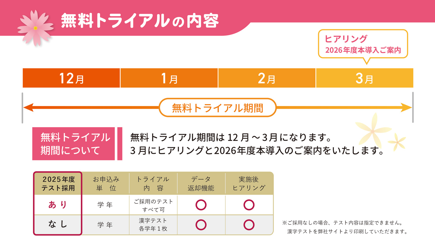 日本標準のテストご採用で無料で使用できますので、ぜひ導入をご検討ください。